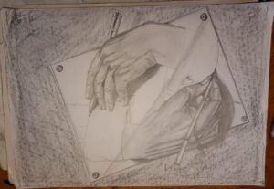 Pentekening gatVoetballerSchaatsen in de polderMiddleearthRikusCrowdsurferSaraPolder bij DubbeldamMiddellandse zeeNoordzeeJampot en wijnflesStilleven kartonPastelkrijt knotwigen4x potlood en houtskoolWalcherenVismarktZon, zee en pier.Paardebloem met tegenlichtNaar Mondriaan. DuinenHanden TimFreddy